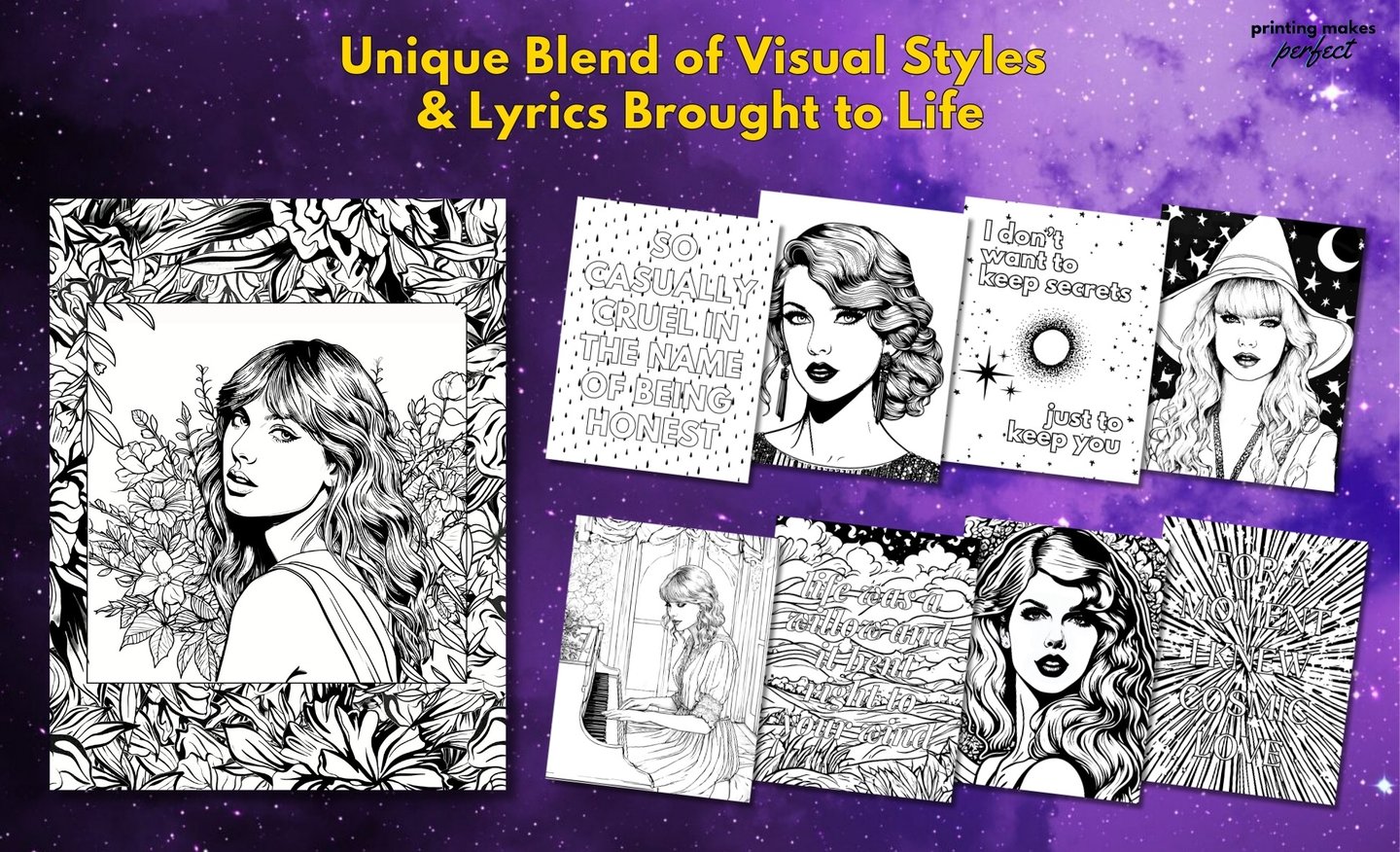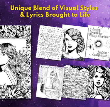 Hand-Selected Lyrics: Color along to some of her most memorable and empowering lyrics, brought to life with intricate designs.