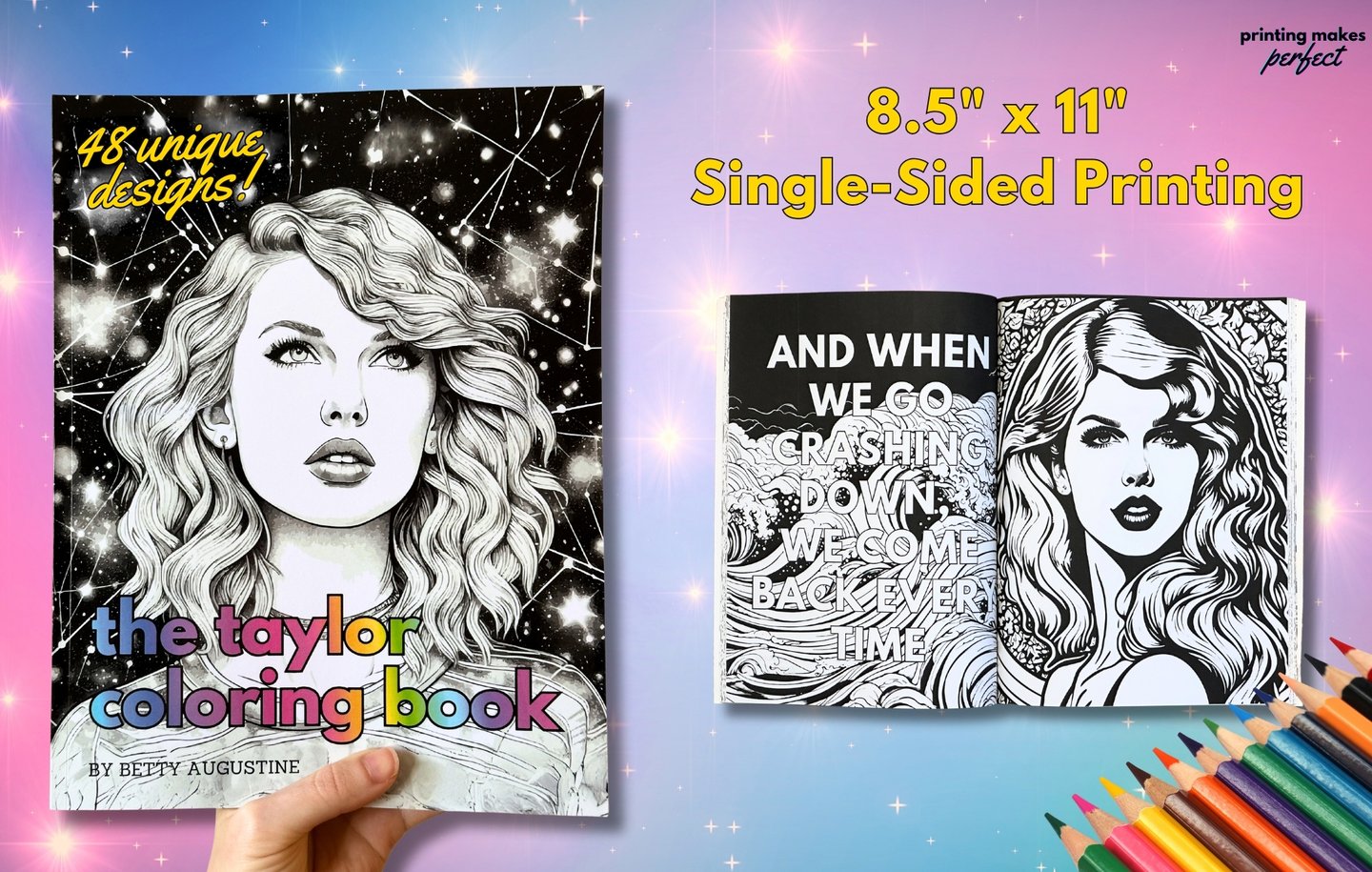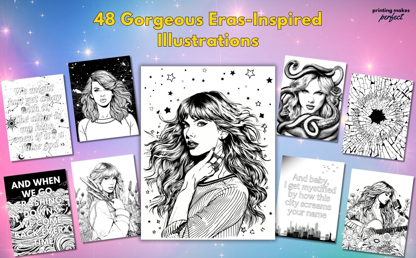 Each page thoughtfully pairs original, hand-drawn illustrations with beloved lyrics that flow through the themes and visuals of Taylor’s iconic eras. This one-of-a-kind coloring book is a visual feast for every fan to celebrate her journey as an artist by adding their personal touch.